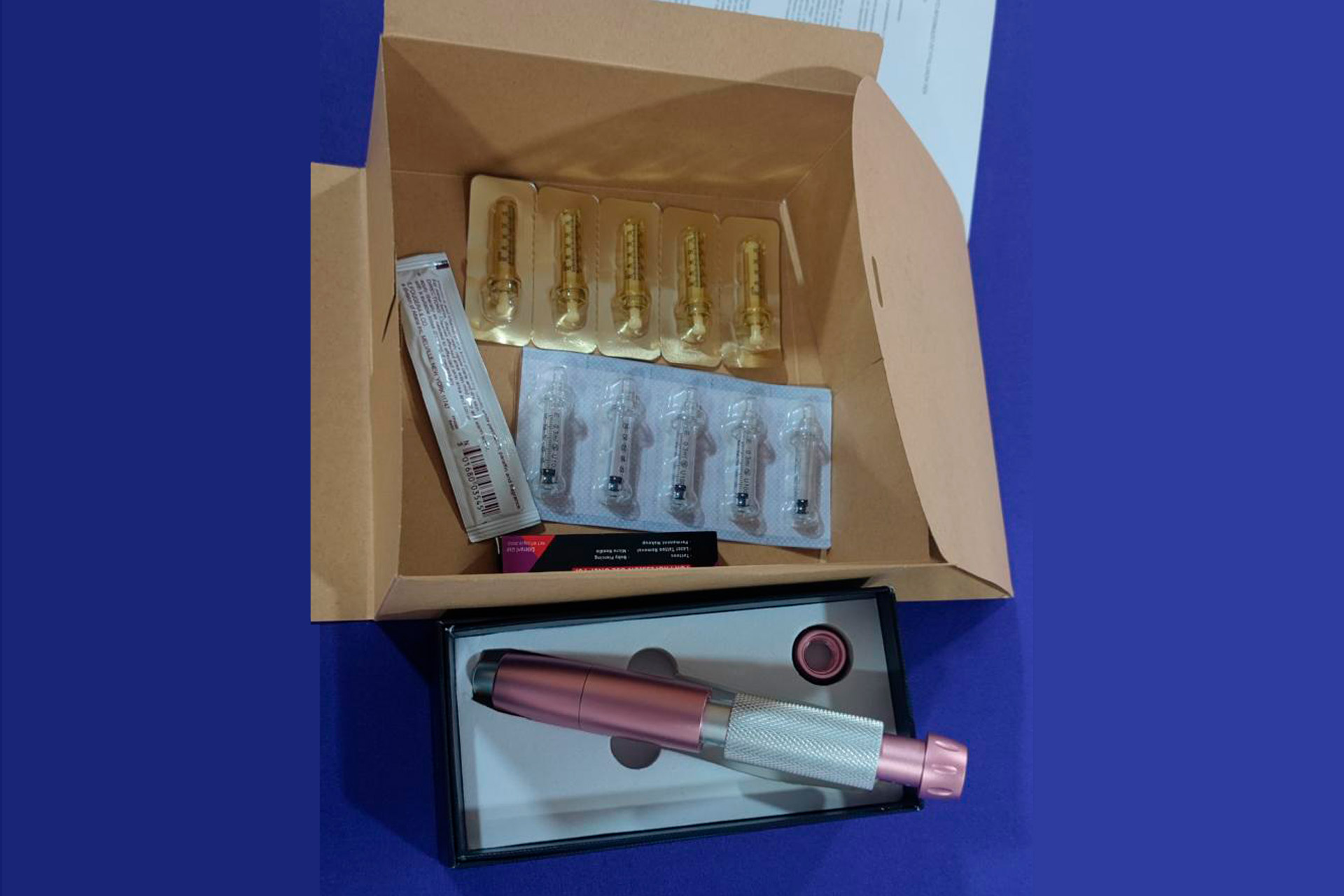 • Incluye Kit de Máquina Hyaluron Pen, manual y 5 cartuchos.